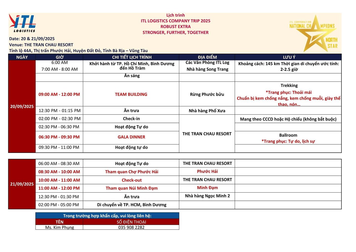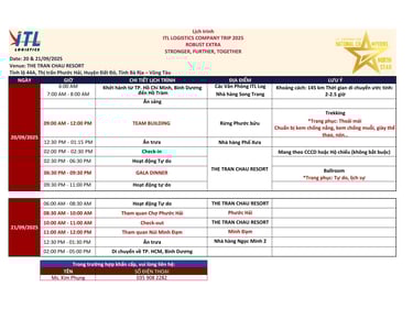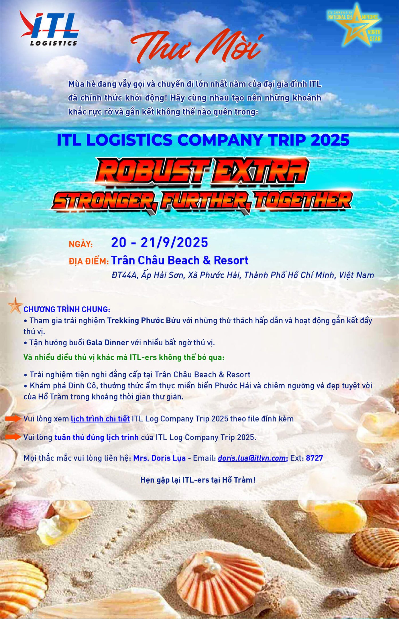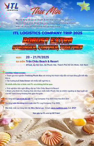 Một hành trình 2 ngày 1 đêm đầy năng lượng và gắn kết đang chờ đón tập thể ITL tại Hồ Tràm. Từ những hoạt động team building sôi nổi, khoảnh khắc thư giãn bên biển xanh cho đến bữa tiệc Gala Dinner ấm áp – tất cả sẽ tạo nên những kỷ niệm khó quên.